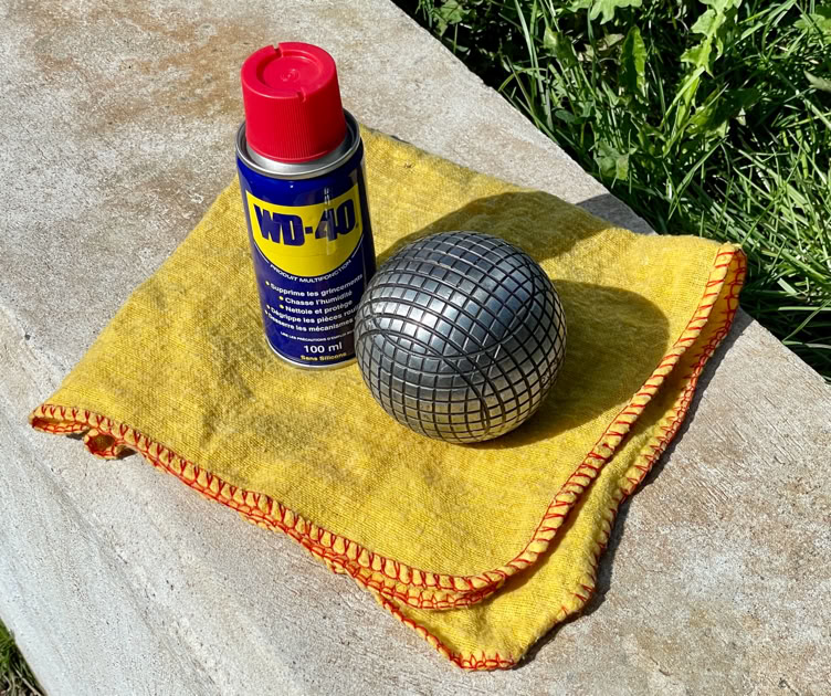 Avec un chiffon type microfibre légèrement huilé (on a bien dit légèrement huilé) essuyez vos boules de pétanque. La fine couche d’huile qui va se déposer permettra de protéger vos boules de pétanque de l’humidité. Utilisez une huile non alimentaire.